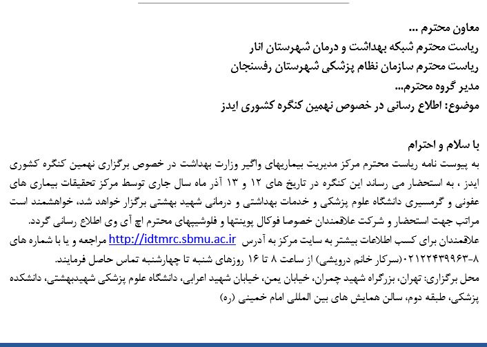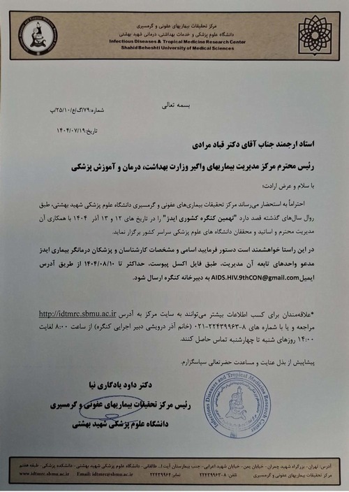 اطلاع رسانی در خصوص نهمین کنگره کشوری ایدز توسط مرکز تحقیقات بیماریهای عفوی و گرمسیری وعفونی دانشگاه شهید بهشتی
