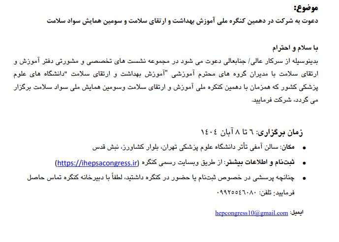 دعوت به شرکت در دهمین کنگره ملی آموزش بهداشت و ارتقاء سلامت و سومین همایش سلامت