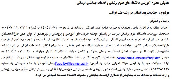 فراخوان جذب نیروی انسانی در رشته طب ایرانی دانشگاه علوم پزشکی بیرجند