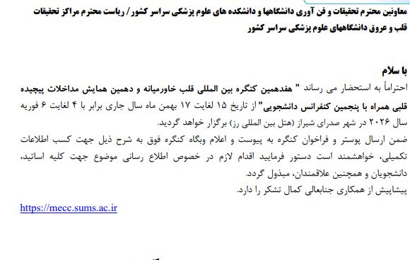 هفدهمین کنگره بین المللی قلب خاور میانه دانشگاه علوم پزشکی و خدمات بهداشتی دانشگاه شیراز